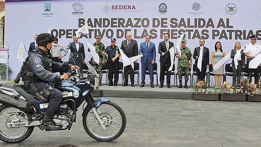 Cuernavaca, Morelos.- El Gobernador del Estado, Cuauhtémoc Blanco Bravo, dio el banderazo de salida al Operativo de las Fiestas Patrias 2019, por medio del cual unirán estrategias los elementos de la Comisión Estatal de Seguridad Publica (CES), Policía Federal y Guardia Nacional. El compromiso es llevar paz social a todo el territorio.