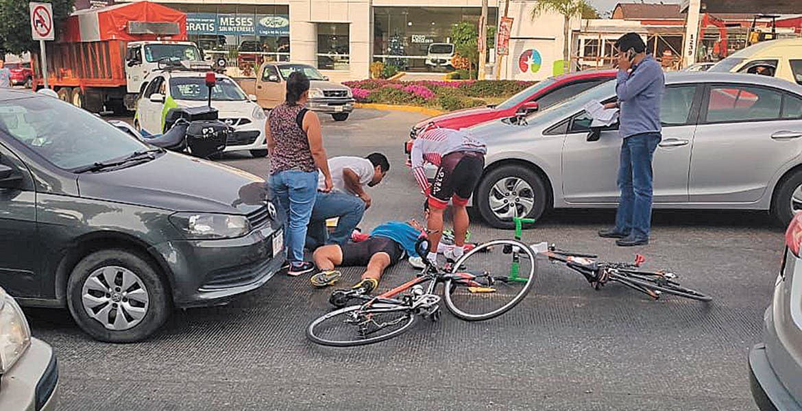 Adalberto, de 49 años, resultó lesionado al ser atropellado por un auto Honda, cuando viajaba en su bicicleta por la avenida Reforma, a la altura de un agencia de autos, en la colonia Miguel Hidalgo, en Cuernavaca, por lo que fue atendido por paramédicos.