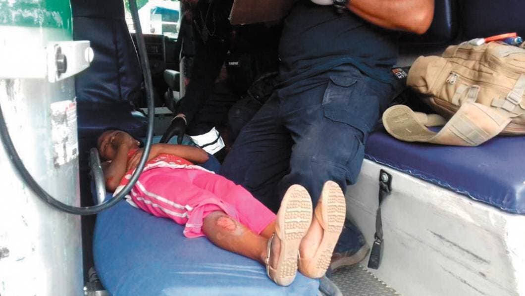 La lesionada es Alondra, de nueve años, quien fue trasladada a un hospital particular para que fuera valorada por los galenos.