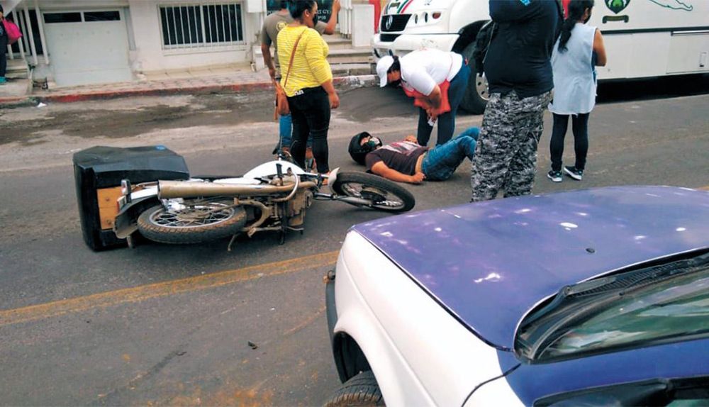Fue a la altura de la ayudantía municipal de Ahuatepec, en la calle 5 de Febrero, donde salió sin precaución un Tsuru que pretendía incorporarse a la carretera, arrollando al motociclista.