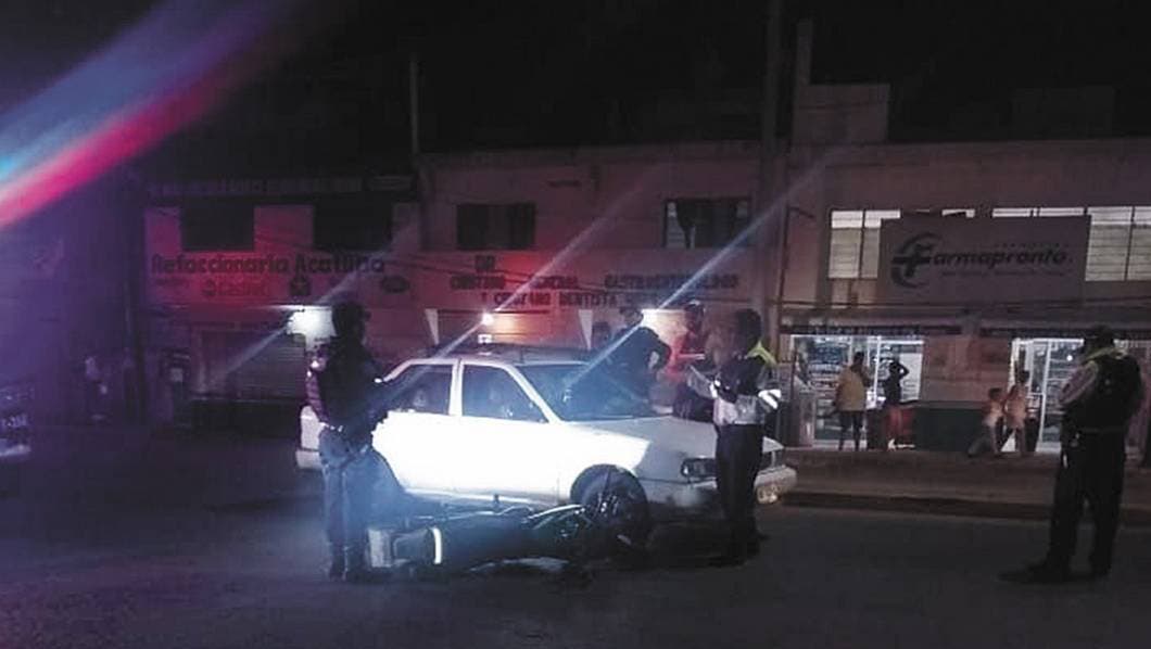 Un motociclista resultó herido al ser arrollado por un auto Nissan-Tsuru, color blanco, cuando circulaba por la avenida Adolfo López Mateos, del poblado de Acatlipa, en Temixco, por lo que fue atendido por paramédicos, pero se negó a ser trasladado a un hospital.