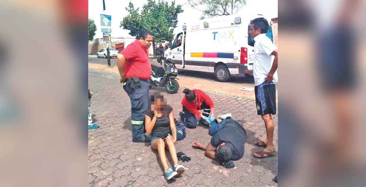 TEMIXCO, MORELOS.- Dos motociclistas resultaron lesionados al ser arrollados por un auto, cuando circulaban por calles del fraccionamiento Campo Verde, en Temixco.