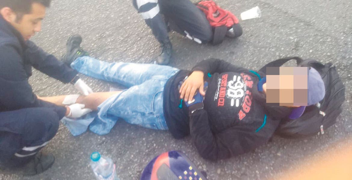 Moisés, de 19 años, resultó con una pierna fracturada, luego de que fuera arrollado por un taxi, presuntamente tras pasarse el alto del semáforo, cuando viajaba en su moto por la avenida Emiliano Zapata, de la colonia Centro de Temixco, por lo que fue atendido por paramédicos y trasladado a un hospital.