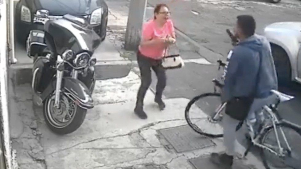 En dicho video, una mujer camina por la vía pública cuando de repente se le acerca un hombre en bicicleta que porta una pistola, amenazándola.