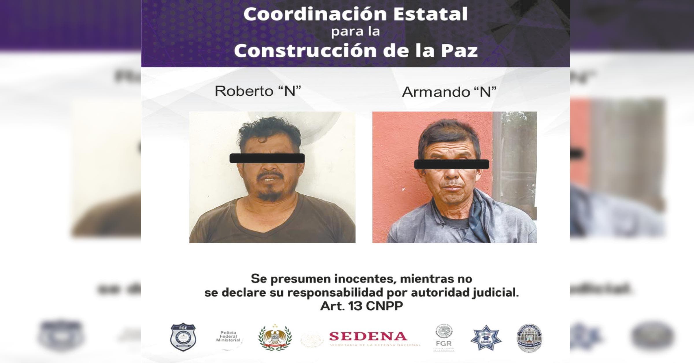 Fueron elementos de la Policía Morelos quienes aseguraron a Roberto, de 45 años; y Armando, de 50, informó la Comisión Estatal de Seguridad (CES).