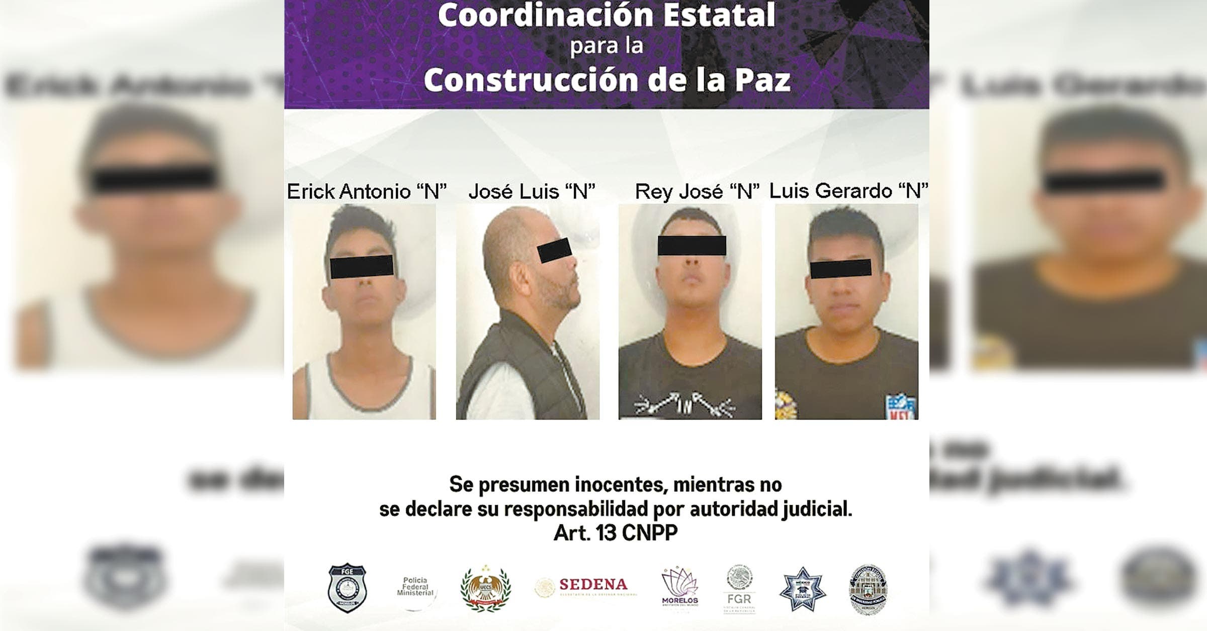 Se trata de Erick Antonio, de 21 años; José Luis, de 44; Rey José, de 22; y Luis Gerardo, de 20 años, quienes fueron puestos a disposición del Ministerio Público por el delito de robo calificado y/o lo que resulte.
