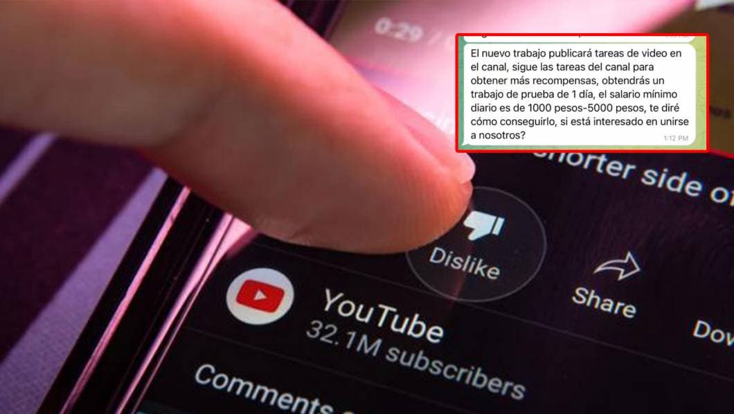 Ahora está circulando un nuevo modo de estafa que involucra la plataforma de Youtube, donde la persona que te contacta dice que solo dar “me gusta” a algunos videos, ganarás cantidades de dinero, pero ¡es una estafa!.