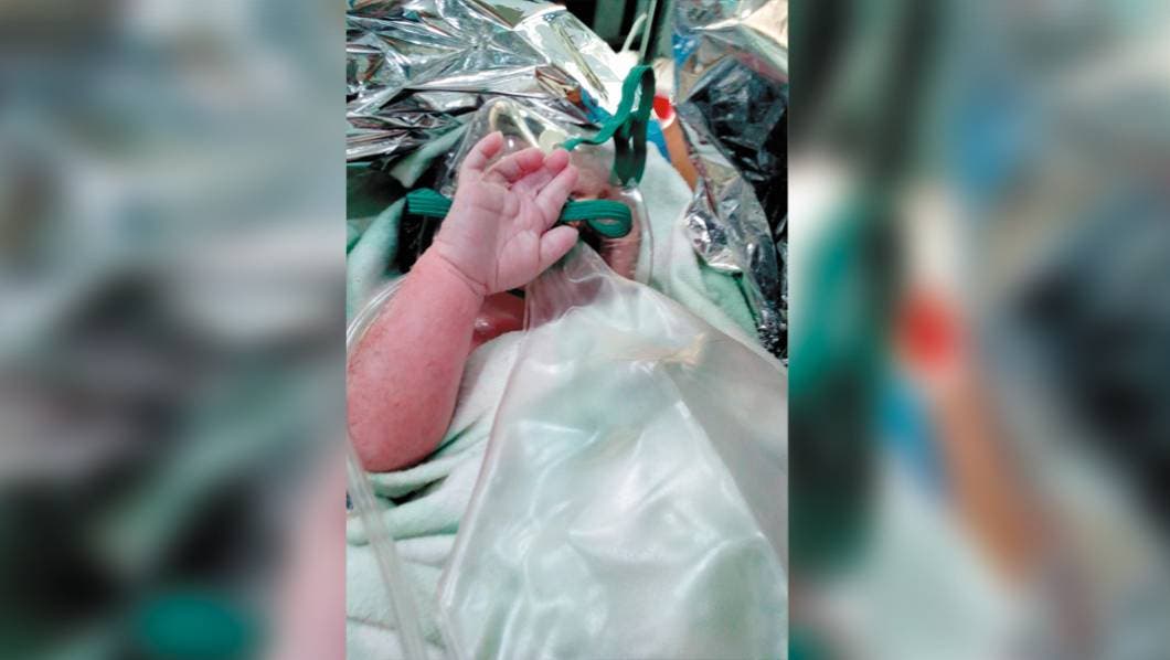 La mujer empezó a tener complicaciones y entró en labor de parto, por lo que no fue posible trasladarla a un hospital y tuvo que ser atendida por paramédicos en su casa.