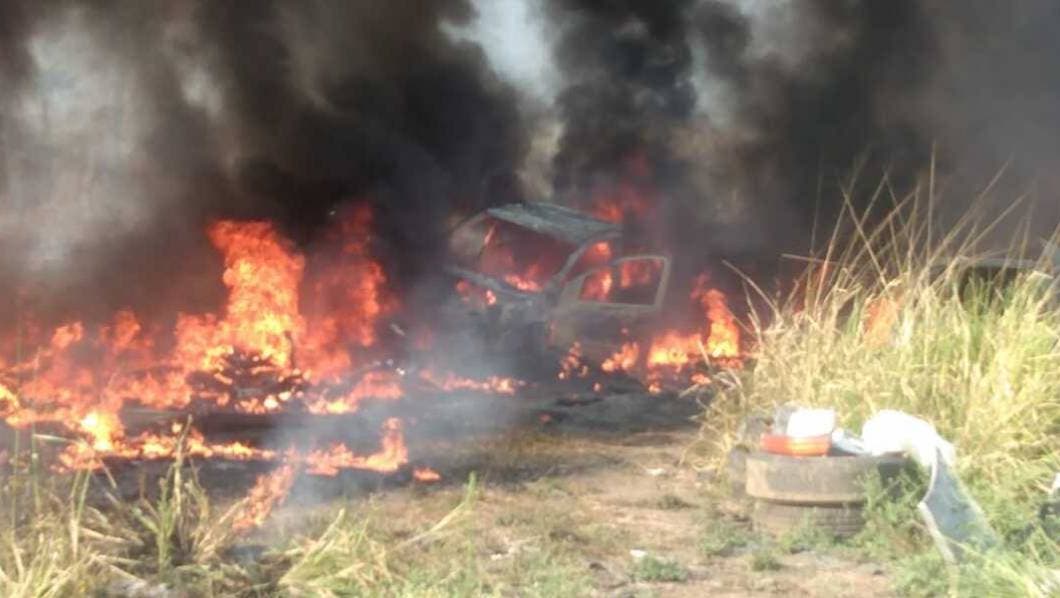 Lo anterior, como consecuencia de un incendio de pastizales, cuyas llamas alcanzaron un lote de vehículos que se venden por partes.