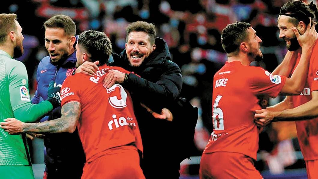 Celebran. El Atlético lo perdía al 90, pero lo terminaron ganando.