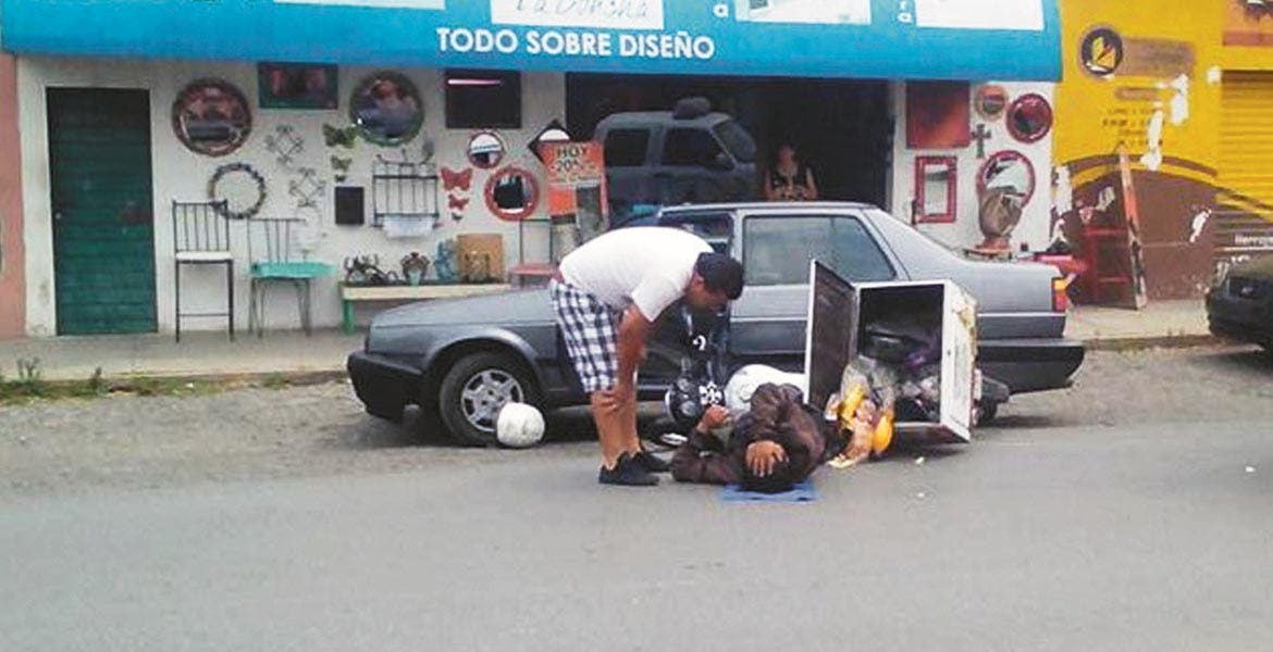 Un repartidor de un supermercado resultó lesionado al ser atropellado por un auto Jetta gris que dio vuelta en "U", cuando viajaba a bordo de su moto por la avenida Miguel Hidalgo, del poblado de Ocotepec, en Cuernavaca, por lo que fue atendido por paramédicos y trasladado a un hospital.
