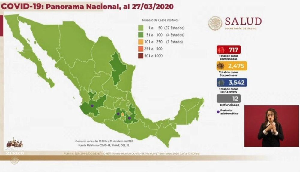 La Secretaría de Salud federal da a conocer esta noche que en el país hay 12 defunciones por COVID19.