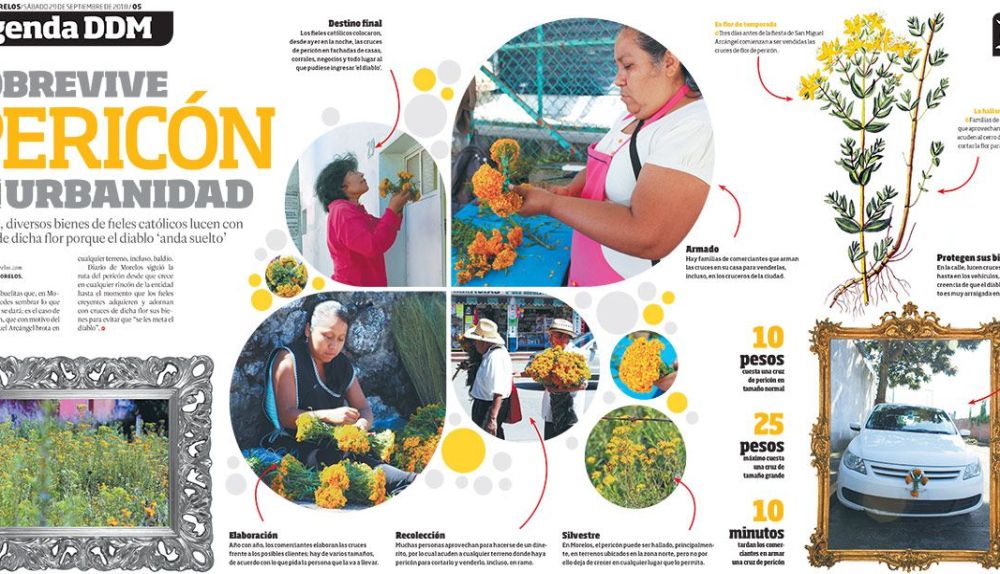 Diario de Morelos siguió la ruta del pericón desde que crece en cualquier rincón de la entidad hasta el momento que los fieles creyentes adquieren y adornan con cruces de dicha flor sus bienes para evitar que “se les meta el diablo”.
