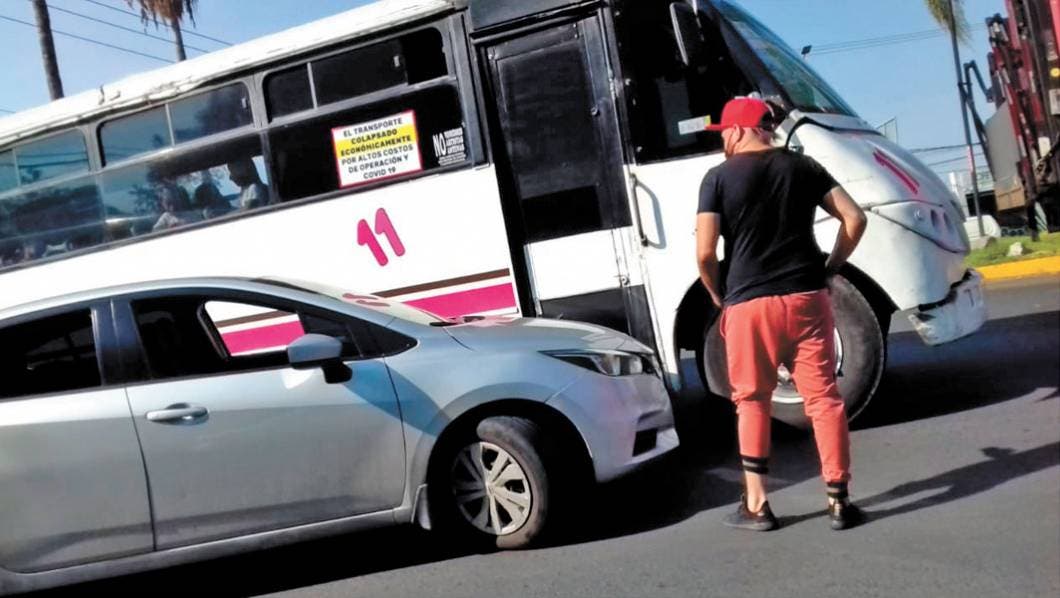 Por querer ganarle el paso a una ruta, un vehículo Nissan Versa terminó con severos daños tras ser impactado por una unidad de la línea 11 cuando circulaba por la avenida Plan de Ayala a la altura del IMSS. Testigos dijeron que el conductor del automóvil salía del Paso Express y al tratar de incorporarse no tuvo cuidado.