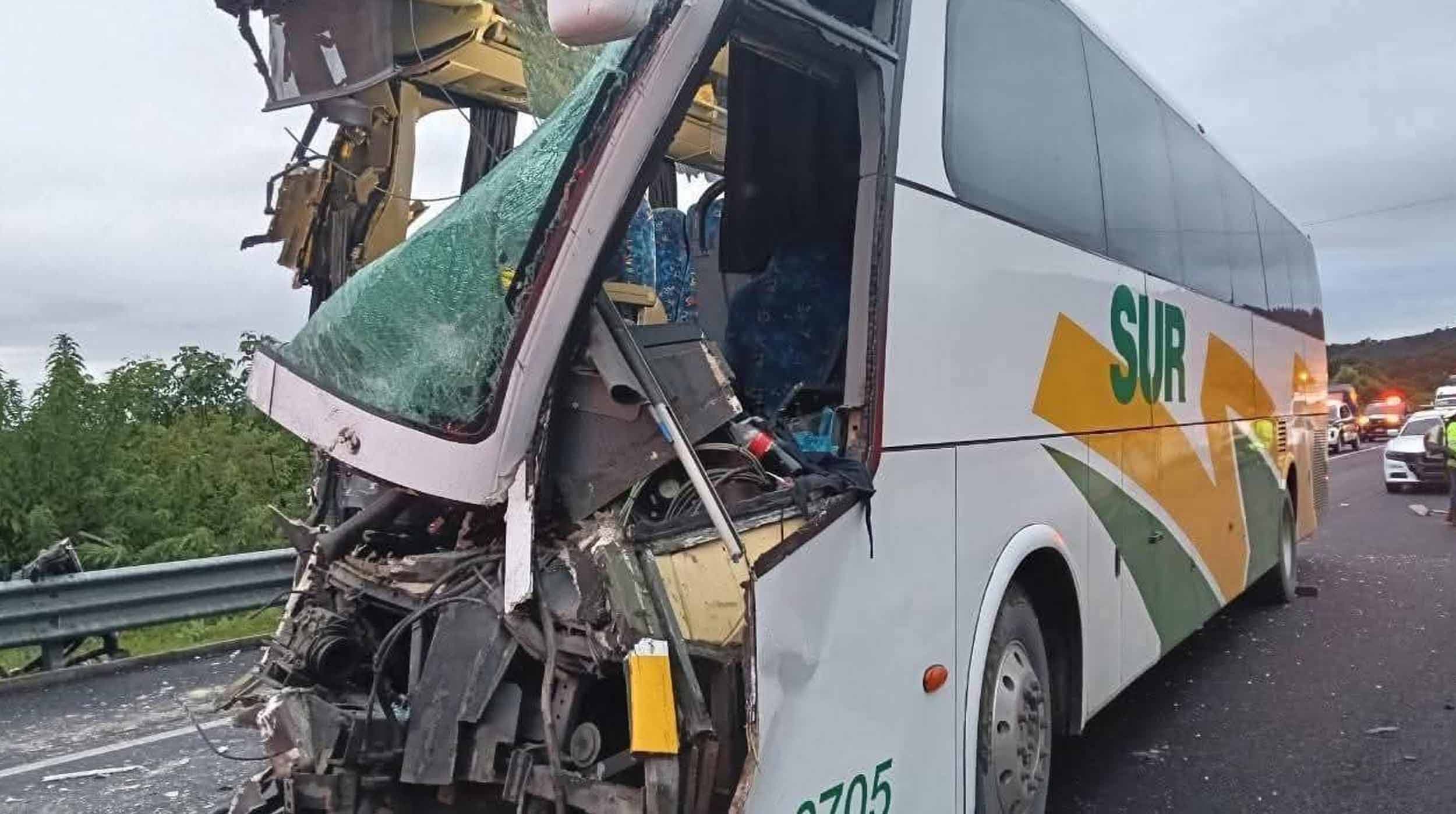 El percance ocurrió a la altura del kilómetro 45, cuando el autobús impactó la parte trasera del vehículo de carga que circulaba en el mismo sentido. Tras el choque, varias personas quedaron atrapadas entre los asientos y el frente de la unidad de pasajeros.