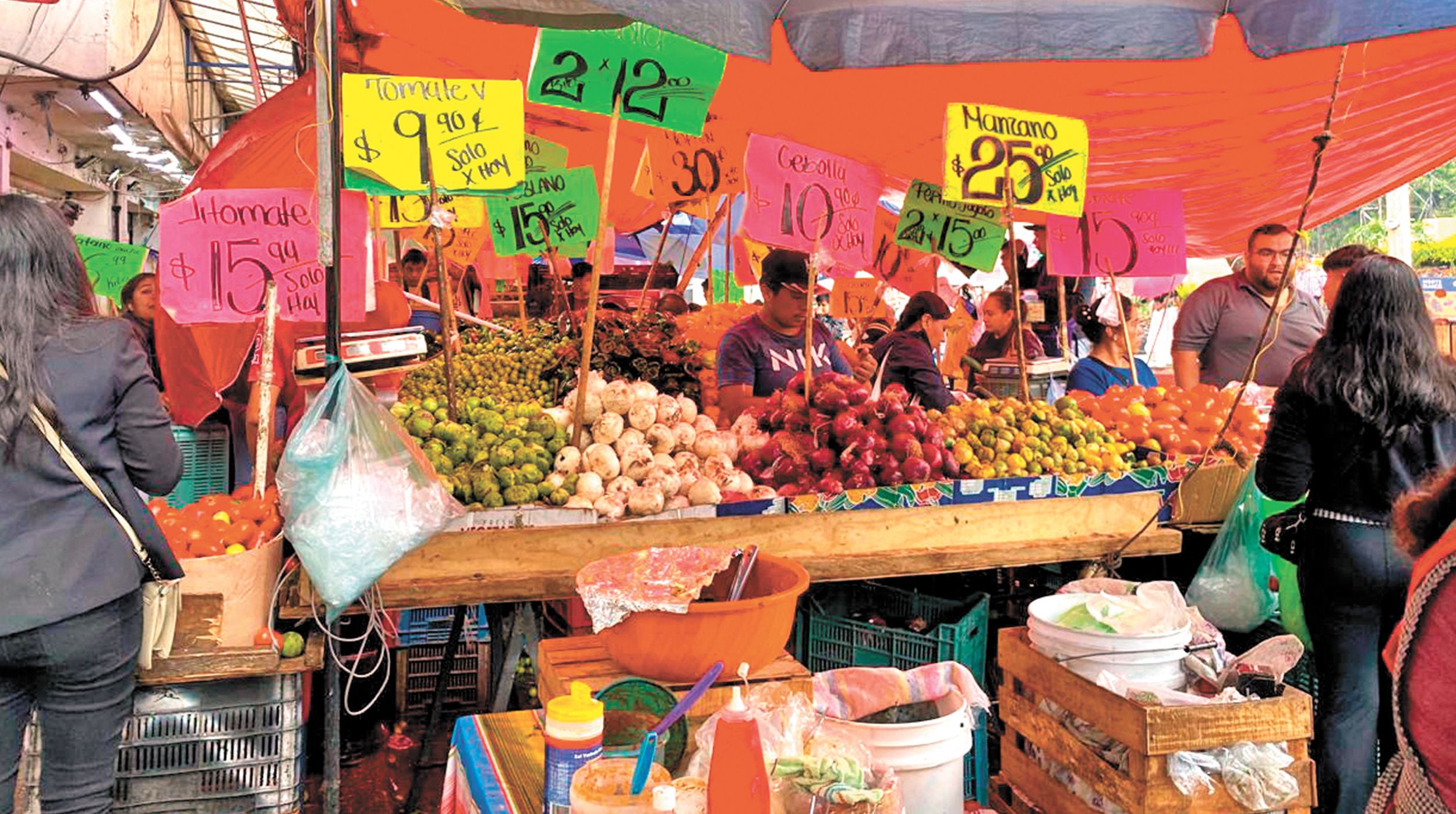 Los precios de productos de la canasta básica registran variaciones en el mercado Adolfo López Mateos, principalmente en frutas y verduras. Comerciantes señalaron que algunos productos bajaron debido a la lluvia, mientras que otros incrementaron por escasez o por estar fuera de temporada.