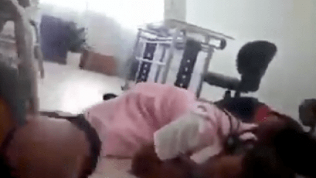 En el video se observa cómo los estudiantes se encuentran en el piso, aterrados, mientras en el exterior de desata una balacera.