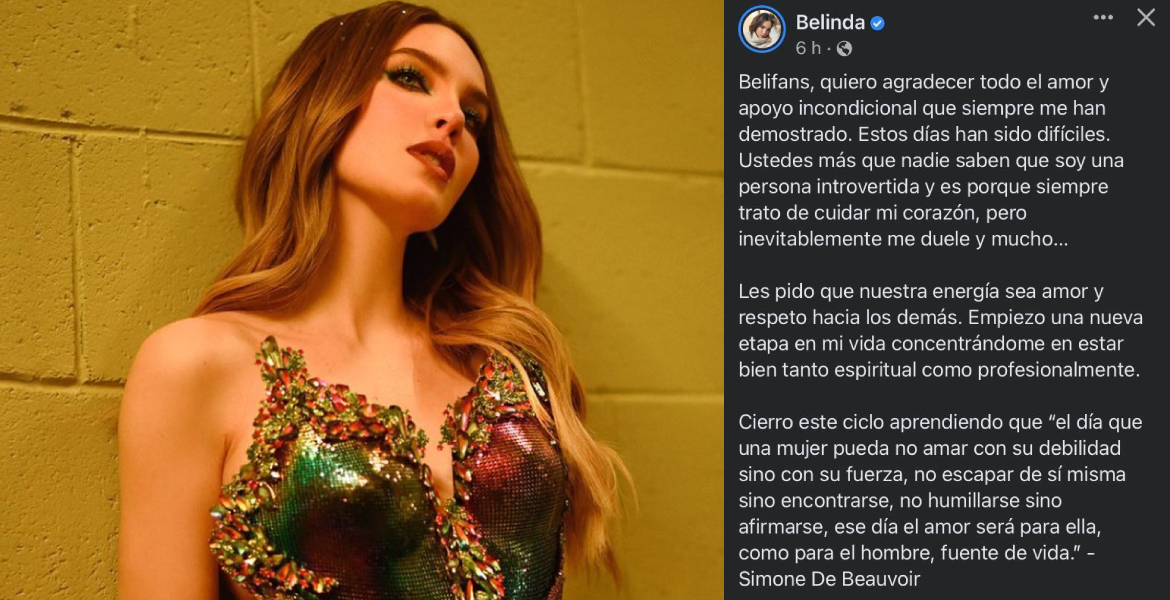 Después de varios días de que la ruptura de Nodal y Belinda estuvieran en boca de todos, por fin la cantante rompió el silencio, a través de sus redes sociales Belinda decidió hablar sobre su rompimiento con Christian, en su mensaje agradecida el apoyo de todos sus Belifans, también pidiendo respeto para él y para ella.