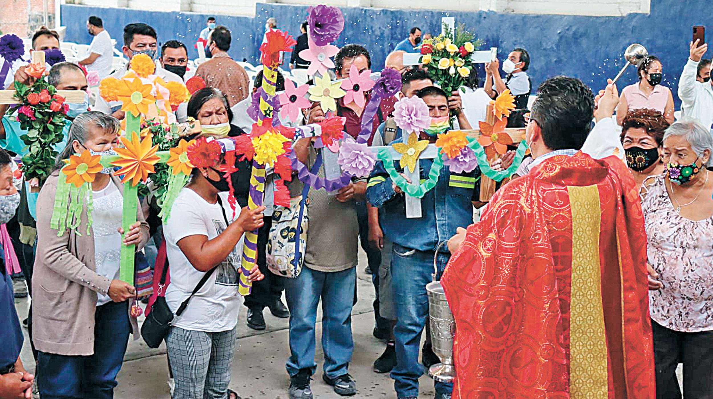 Al final del culto, el cura bendijo con agua bendita las cientos de cruces de todos tamaños y materiales, las cuales llevaban los feligreses en sus manos y resignados recibieron también la bendición a sus personas.
