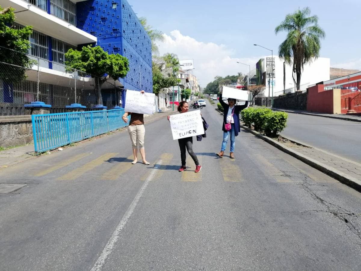 Esta mañana, padres de familia de la primaria 18 de Marzo, ubicada en Tlaltenango, bloquean desde hace 3 horas la avenida Emiliano Zapata, luego de que pidan a las autoridades educativas la permanencia de su maestra.
