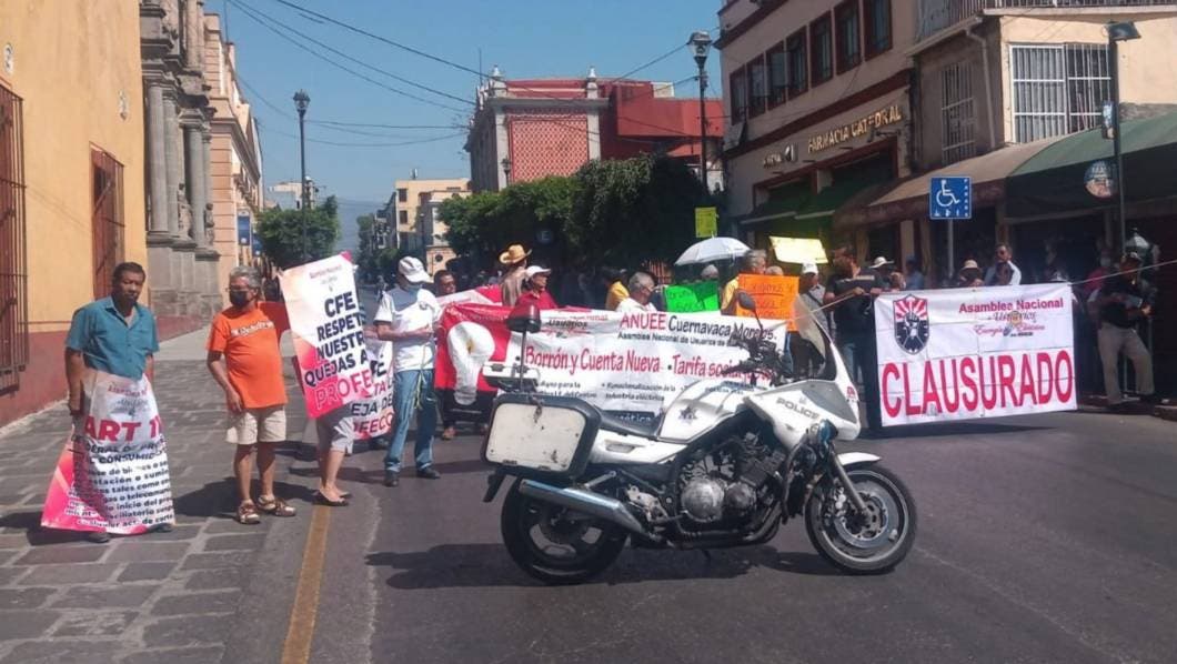 Este jueves, integrantes de la Asamblea Nacional de Usuarios de la Energía Eléctrica (ANUEE) protestaron en el centro de Cuernavaca.