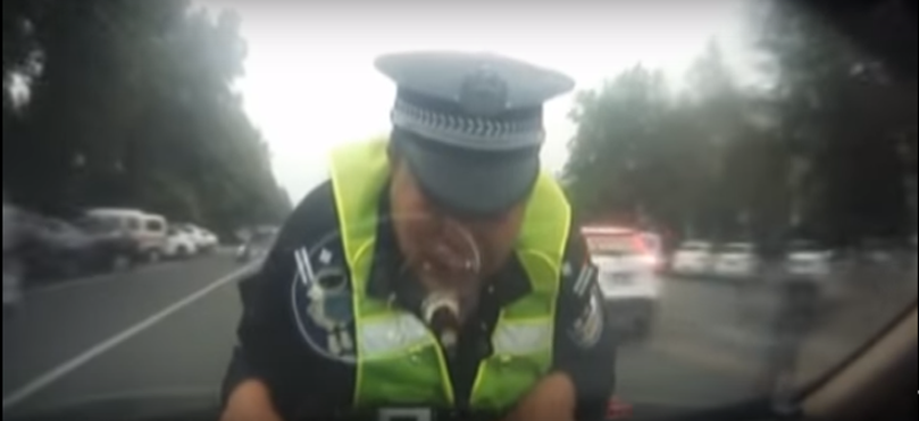 Un hombre que viajaba en un estado alcoholizante trató de evitar pasar por un retén del alcoholímetro en China y de paso se lleva a un oficial de policía sobre su cofre y al mismo tiempo es grabado por el mismo, le da un pequeño paseo en donde hasta su gorra salió volando, quién manejó cerca de dos kilómetros con el encima.
