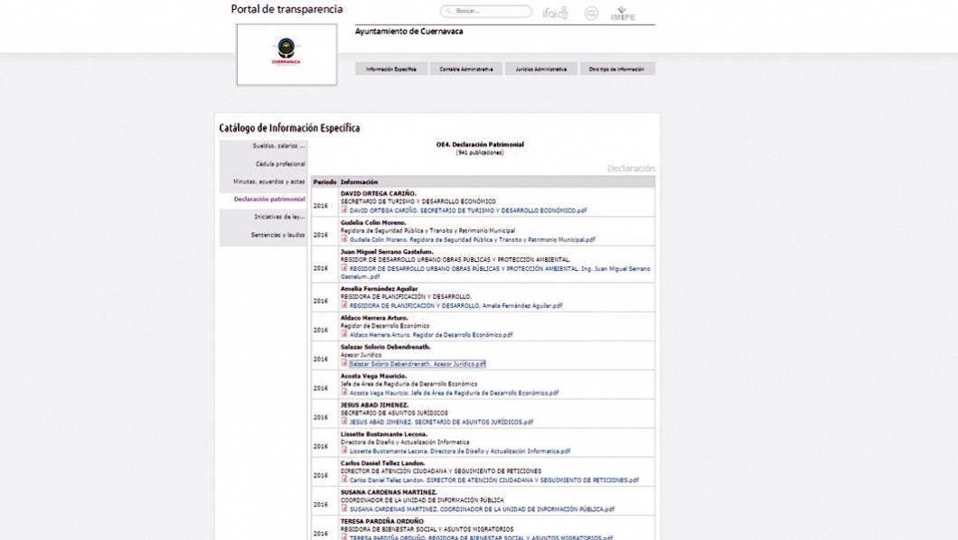 En el caso de la entrega de las declaraciones patrimoniales que sirven para conocer con lo que llegan y compararlos luego cuando se vayan, los servidores públicos no habrían cumplido en un 70 por ciento con ese trámite, entre ellos el alcalde Cuauhtémoc Blanco y sus principales colaboradores, como su eterno apoderado y secretario Técnico de la comuna, José Manuel Sanz Rivera.