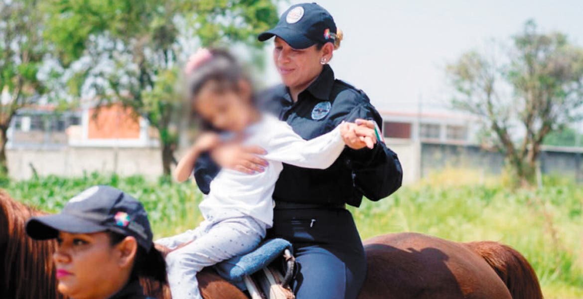 Cuernavaca, MORELOS.- La Comisión Estatal de Seguridad Pública (CES), a través de la Policía Montada, realizó más de 200 sesiones de equinoterapia en el primer trimestre del año, como parte de una labor social de ayudar a quienes más lo necesitan.