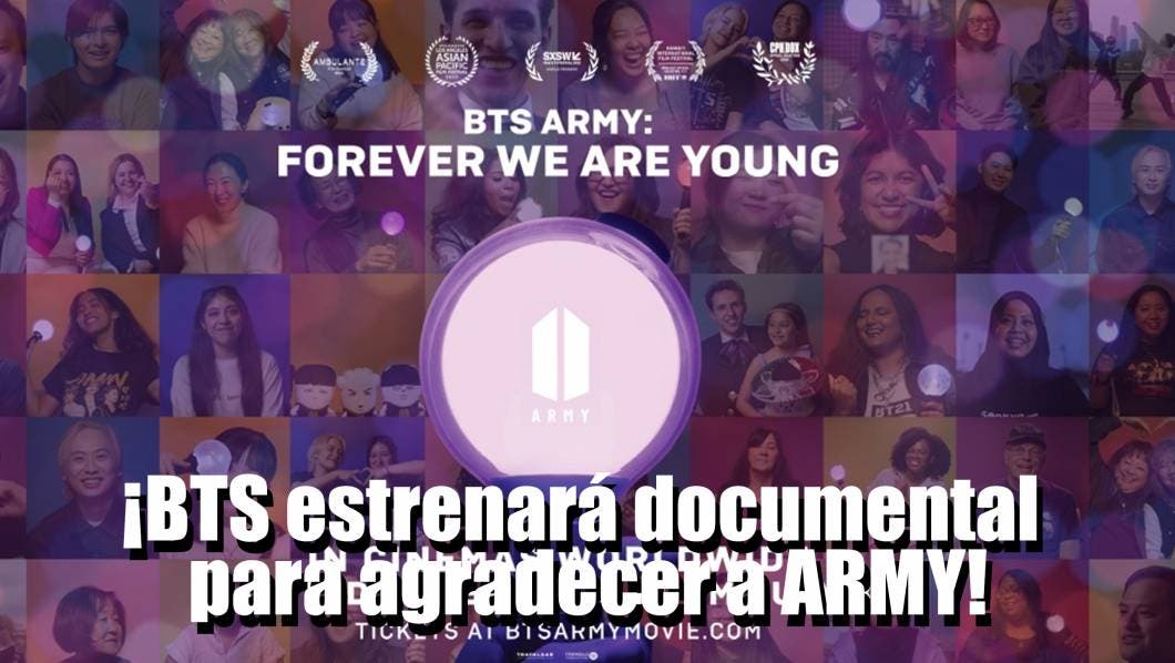 BTS ha anunciado la llegada de su documental llamado “BTS ARMY: Forever We Are Young” a México, el cual se proyectará el 30 de julio, 2 y 3 de agosto de 2025, en salas seleccionadas de Cinemex y Cinépolis de todo el país; y contara con una preventa de boletos, la cual comenzará este próximo miércoles 2 de julio a través de sus páginas oficiales.