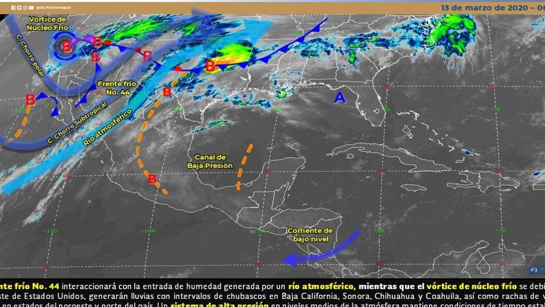 Todo se asocia al establecimiento de un canal de baja presión desde el norte hasta el centro del país, favoreciendo un aumento de nublados y potencial de tormentas en estados de dichas regiones.