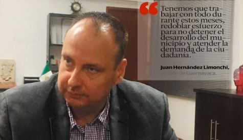 "Tenemos que trabajar con todo durante estos meses, redoblar esfuerzo para no detener el desarrollo del municipio y atender la demanda de la ciudadanía.” Juan Hernández Limonchi, alcalde de Cuernavaca.