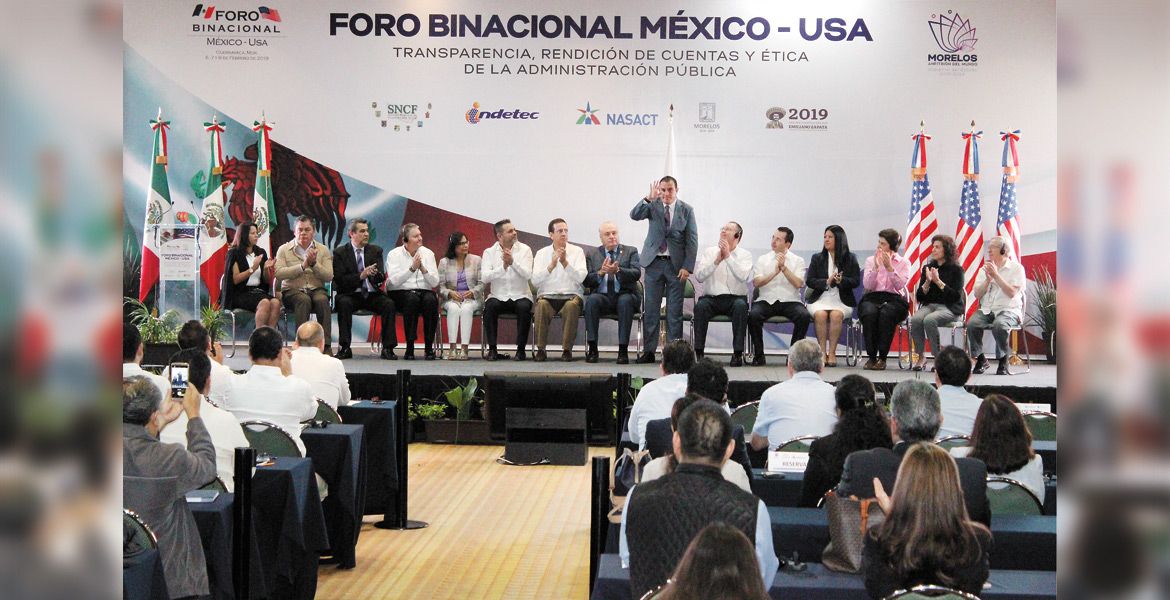 JIUTEPEC, MORELOS.- Con el objetivo de que el estado y el país avancen en el combate de la corrupción a través de un desempeño más ético de funcionarios y servidores de la administración pública, autoridades participan en el Foro Binacional México-Estados Unidos, denominado Transparencia, Rendición de Cuentas y Ética de la Administración Pública, inaugurado por el Gobernador Cuauhtémoc Blanco Bravo.