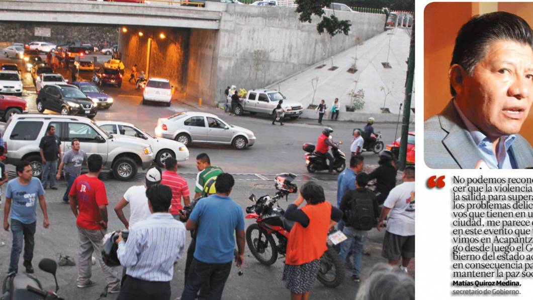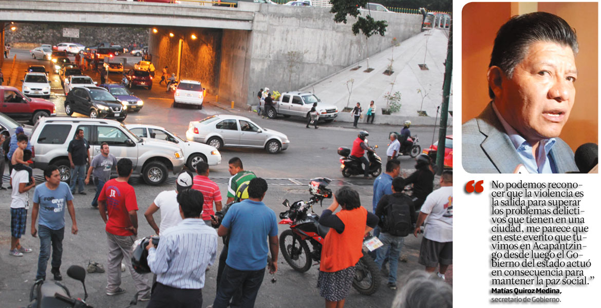 "No podemos reconocer que la violencia es la salida para superar los problemas delictivos que tienen en una ciudad, me parece que en este evento que tuvimos en Acapantzingo desde luego el Gobierno del estado actuó en consecuencia para mantener la paz social." Matías Quiroz Medina, secretario de Gobierno.