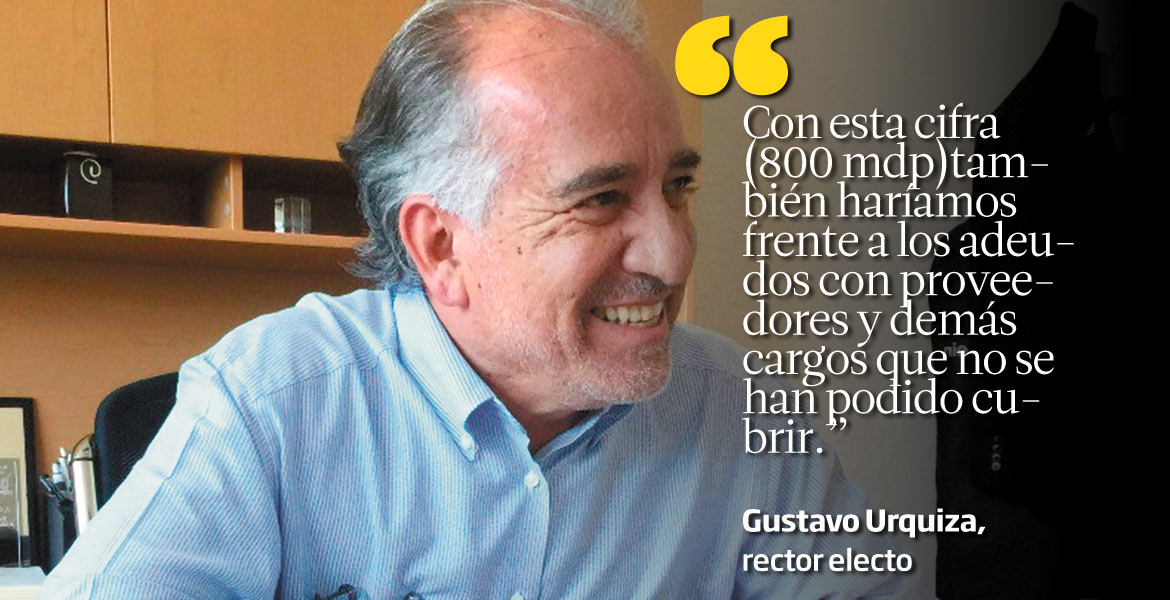 "Con esta cifra (800 mdp)también haríamos frente a los adeudos con proveedores y demás cargos que no se han podido cubrir." Gustavo Urquiza, rector electo