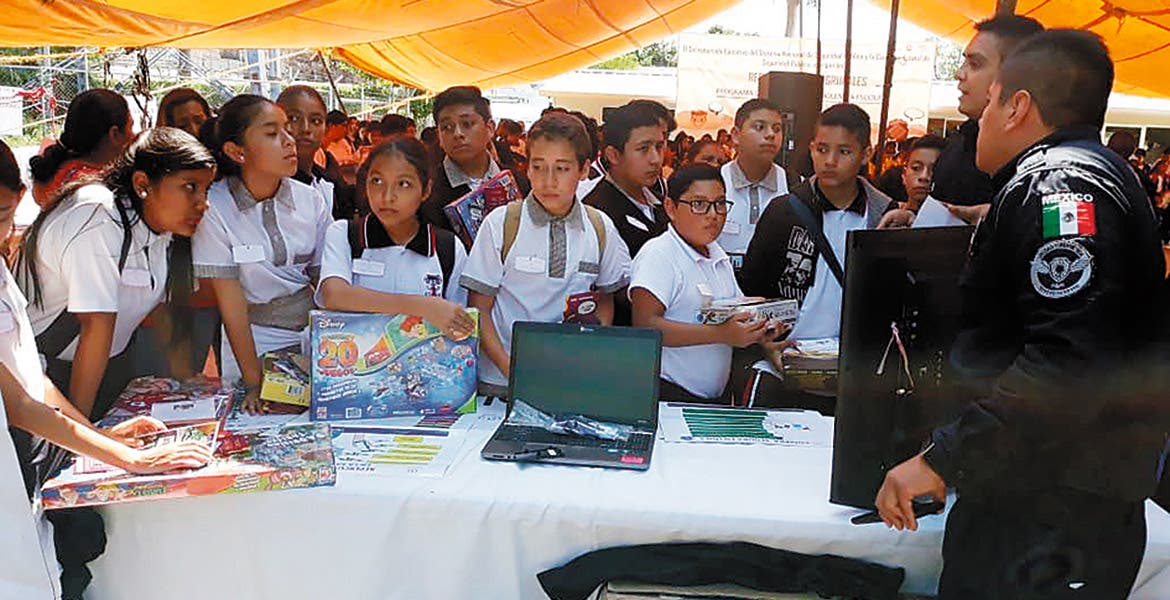 JOJUTLA, MORELOS.- Como parte de las acciones enfocadas a fortalecer los esquemas para erradicar la violencia escolar, la Comisión Estatal de Seguridad Pública (CES) llevó a Jojutla la Feria de la Prevención, donde 265 estudiantes conocieron el trabajo que realizan la Policía Canina, Cibernética, Montada, la Patrulla Juvenil y la Unidad Especializada en Atención a Mujeres Víctimas de Violencia Doméstica.
