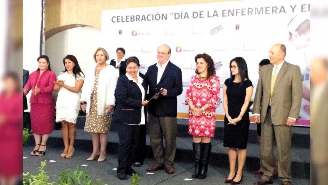 Reconocimiento. Graco Ramírez acompañado por la titular de Salud, Ángela Patricia Mora González, durante la entrega de diplomas a enfermeros.