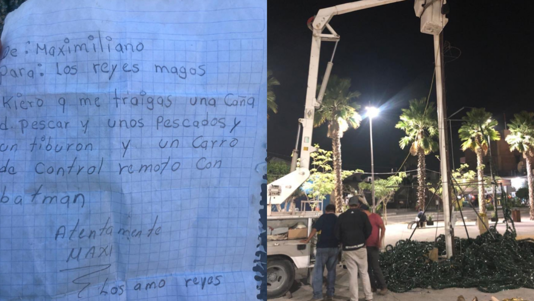 Lo anterior fue dado a conocer por el alcalde, Juan Ángel Flores Bustamente, quien aseguró que “al desmontar el árbol de Navidad de nuestro Zócalo, encontramos esta hermosa carta a los Reyes Magos, si alguien conoce a Maximiliano y a sus papás, díganle que los Reyes le dejaron algo en mi oficina en la presidencia municipal.