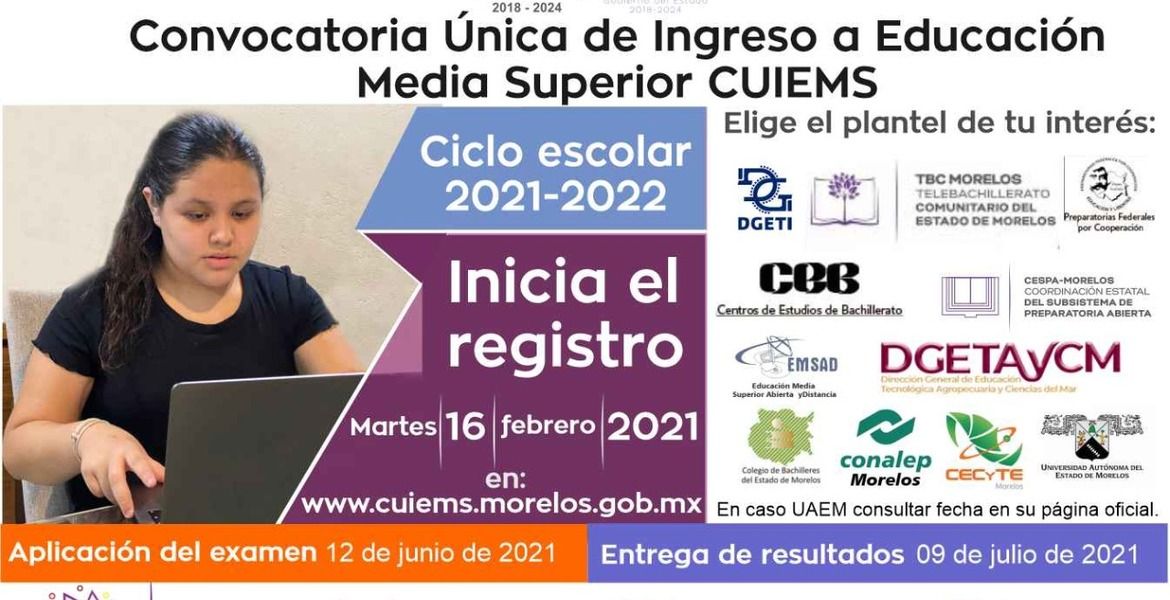 La Secretaria de Educación del estado de Morelos, a través de la Dirección General de Educación Media Superior y Superior (DGEMSS), abre el proceso de admisión 2021 para las y los alumnos que deseen ingresar a algún subsistema de educación media superior.