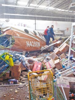 Temixco, MORELOS.- Tres muertos, cinco lesionados y miles de pesos en daños fue el saldo que dejó el desplome de una avioneta sobre la tienda Bodega Aurrera de la colonia Azteca, en Temixco.