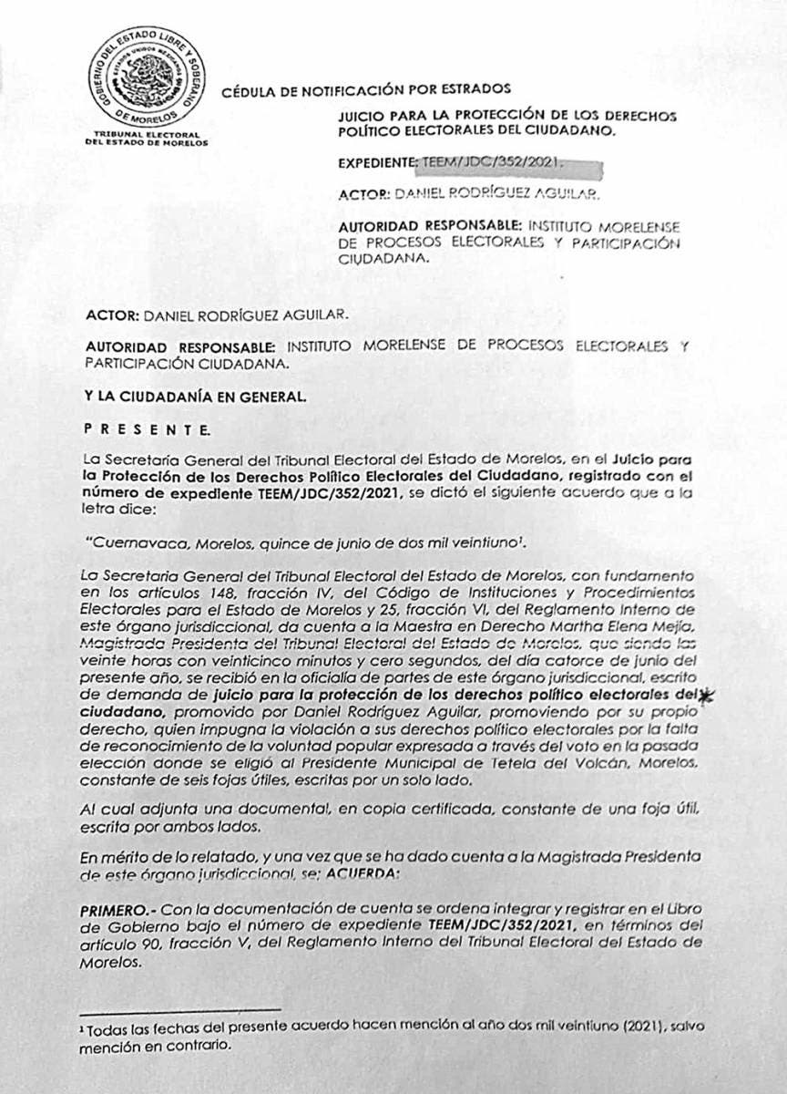 A saber, la noche del 15 de septiembre venidero o en alguna previa, el Tribunal Estatal Electoral de Morelos podría dar no el grito, pero sí pronunciarse sobre asuntos relacionados con este mismo turbio asunto y, claro, con el riesgo de que por ahí de noviembre la Sala Regional del Tribunal Electoral del Poder Judicial de la Federación oootra vez le corrija la plana.