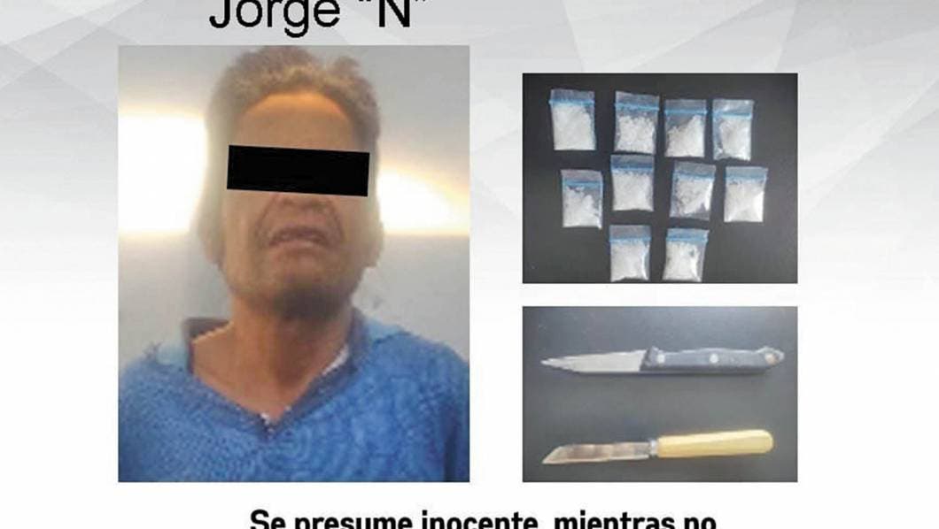 La Comisión Estatal de Seguridad (CES) informó que Jorge “N”, de 44 años, fue puesto a disposición del Ministerio Público por delitos contra la salud y/o lo que resulte.
