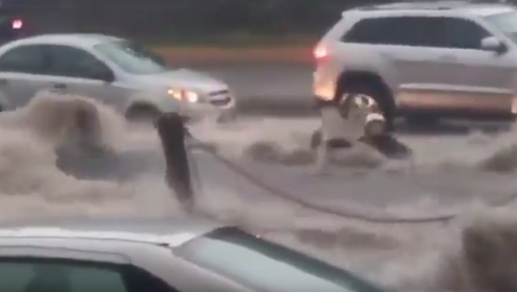 Un video que circula en redes sociales muestra a un motociclista que circulaba por la carretera Picacho-Ajusco justo en el momento en que caía una tromba en la zona la tarde de ayer jueves.