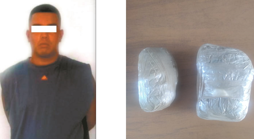 Con dos tabiques de mariguana fue detenido Erick Gabriel, de 22 años, con domicilio en la colonia Santa Rosa, en Yautepec, tras ser sorprendido en un punto de revisión en la carretera local Ocuituco-Yecapixtla, a la altura del paraje Los Topes de la Ponderosa, en Ocuituco, cuando viajaba a bordo de una ruta.