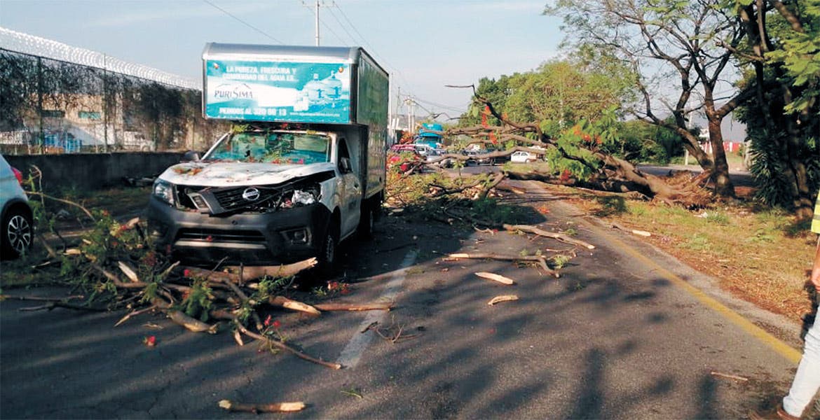 De igual manera, la mañana de ayer, un árbol ubicado en el camellón del Libramiento Yautepec-Cuautla, se desplomó generando daños a una camioneta repartidora de agua que pasaba en ese momento.