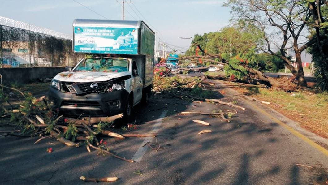 De igual manera, la mañana de ayer, un árbol ubicado en el camellón del Libramiento Yautepec-Cuautla, se desplomó generando daños a una camioneta repartidora de agua que pasaba en ese momento.