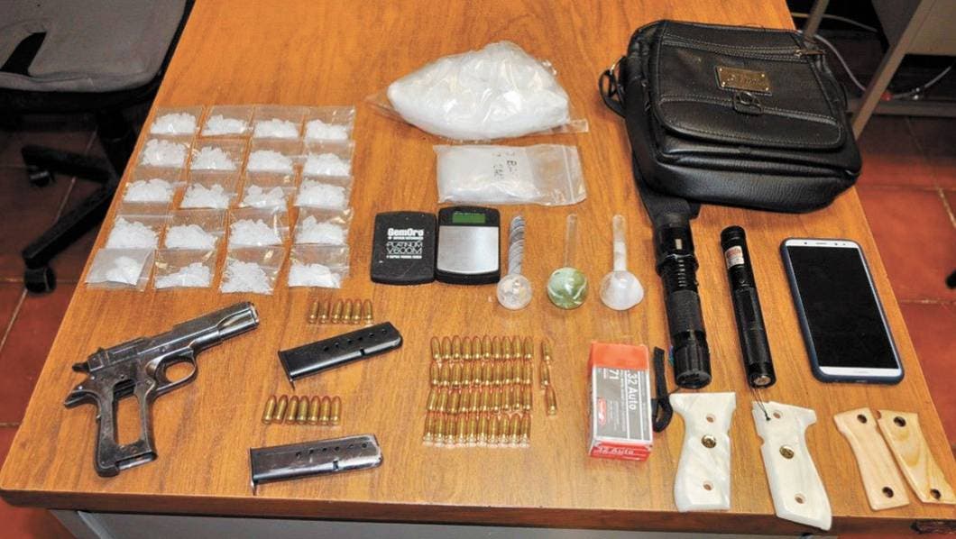 Ante dicha situación oficiales estatales desplegaron un operativo y fue en la colonia Rafael Merino, en donde detuvieron a los sujetos con 20 dosis de “cristal”, una pistola calibre .765 mm, con siete cartuchos útiles, y 43 balas, tres pipas, una lámpara táctica, una báscula digital y un celular.