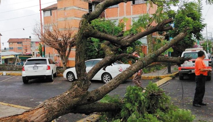 Tres árboles se desplomaron en las colonias Rancho Cortés y Teopanzolco, en Cuernavaca, por el reblandecimiento de la tierra debido a las fuertes lluvias, ocasionando afectaciones en algunas líneas telefónicas y el cierre parcial de calles.