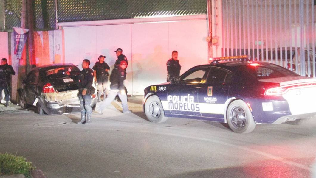 Asimismo, fue a la altura del fraccionamiento Brisas, en Temixco, en donde el Pontiac se impactó contra un poste, logrando detener a seis personas, entre ellos una mujer, a quienes les hallaron armas largas.