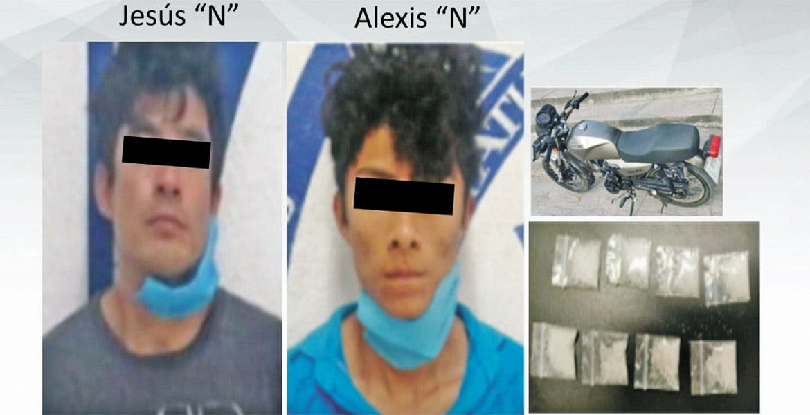 TlaltizaPÁN, MORELOS.- Con una moto robada y varias dosis de droga fueron capturados dos hombres la tarde del jueves en la colonia Otilio Montaño.