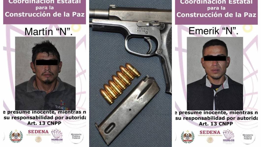 Por tal motivo, se detuvo a quienes dijeron llamarse Martín “N”, de 28 años de edad, y Emerik “N”, de 25 años, quienes quedaron a disposición del Ministerio Público del Fuero Común, quien se hará cargo de su situación legal.